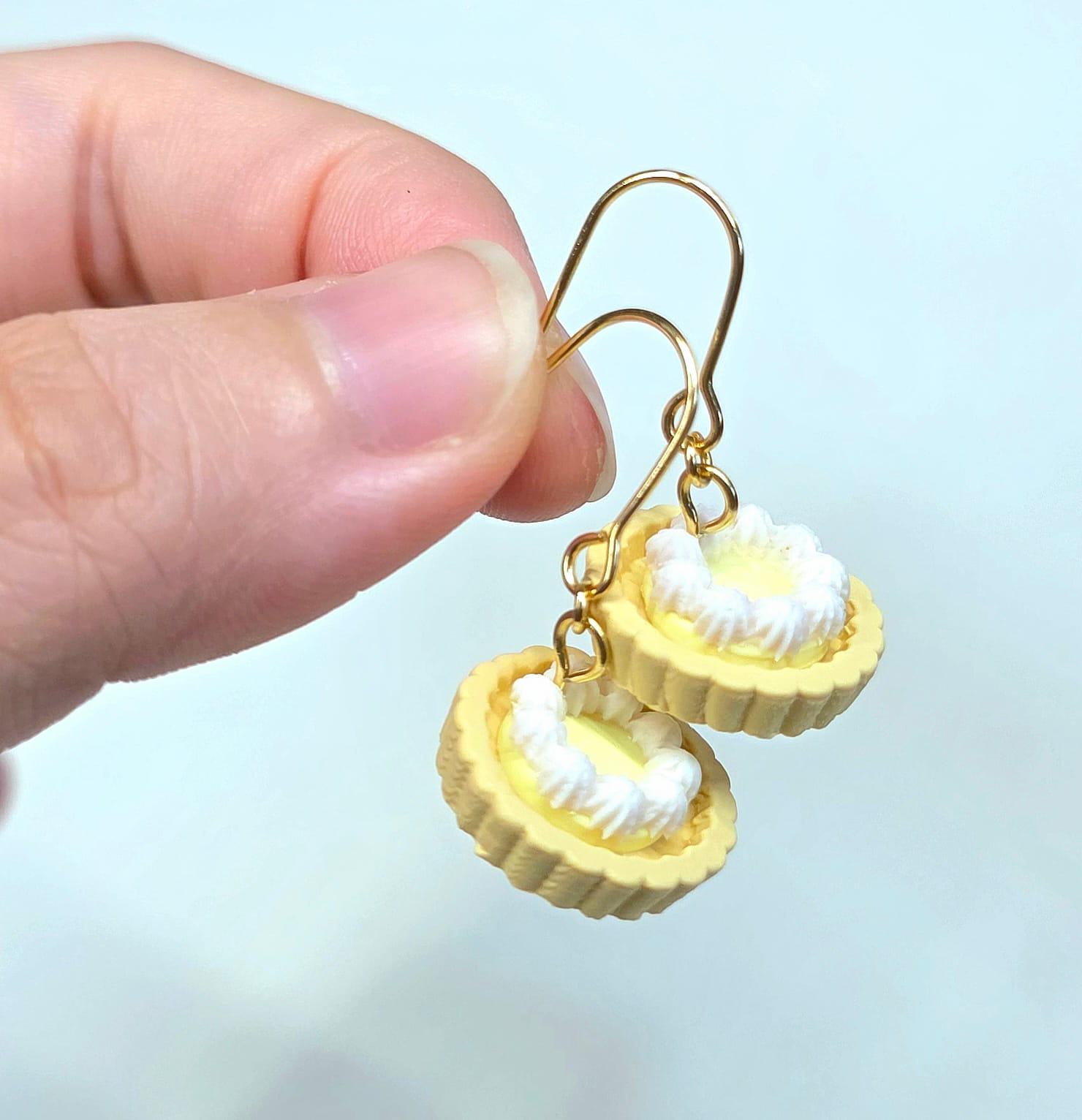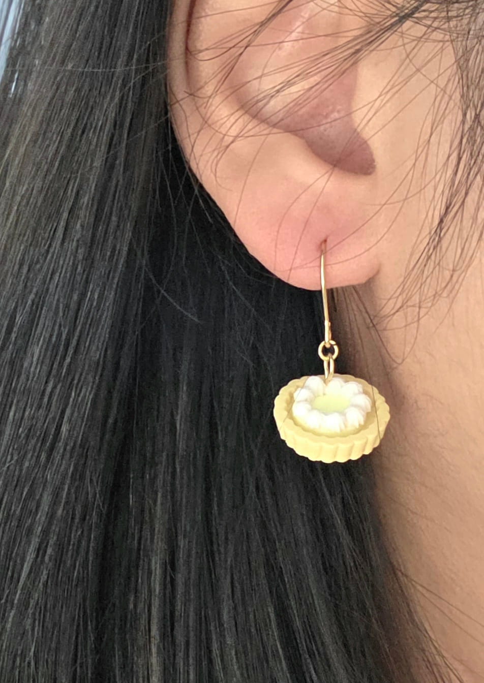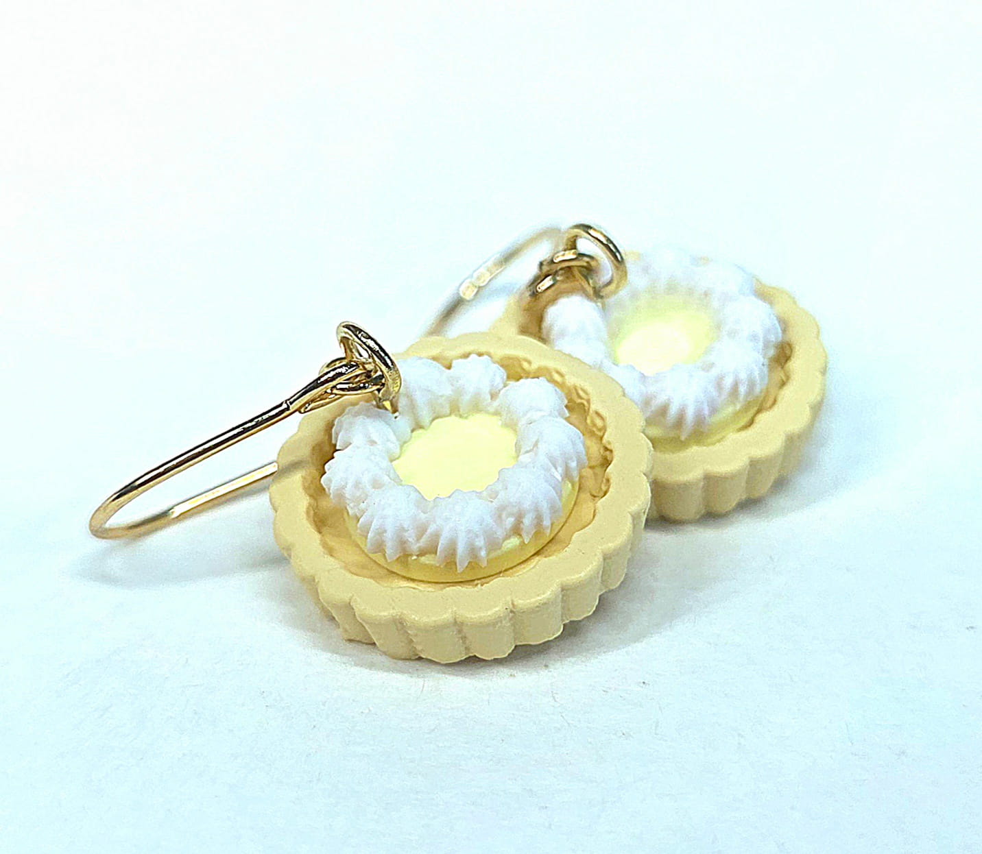 Ear hooks: Stainless Steel Lemon tart made of polymer clay.